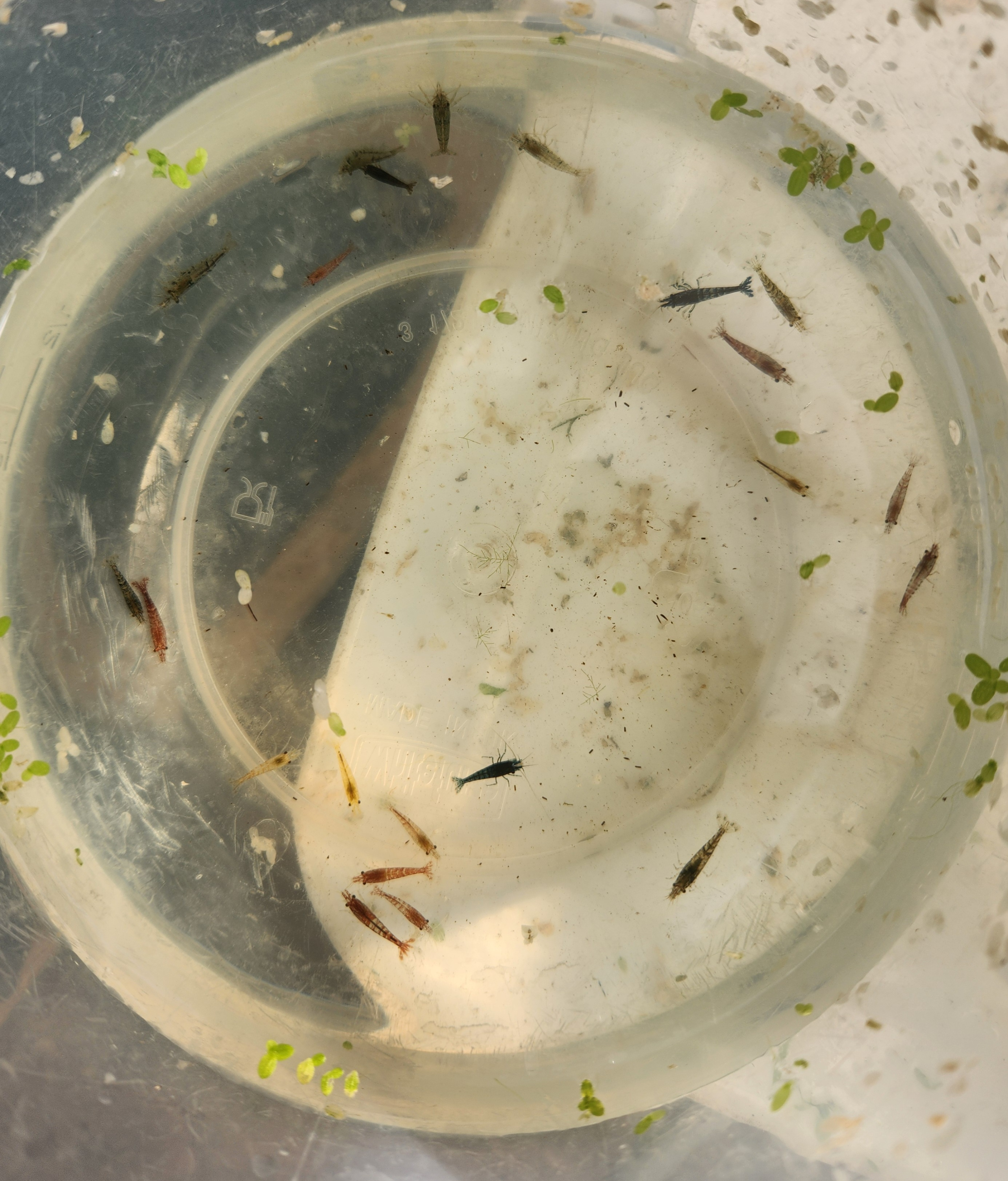 These are cull Skittles so cheap and cheerful. They are not the best colours or classed as lower grade coloured shrimp. They will have some shades of red, blue, grey, yellow, brown, etc including lot of wild type. They are very easy to breed and babies turn out all sorts of wonderful colour's. Free Plant will from from water lettuce, Guppy Grass or Duckweed.